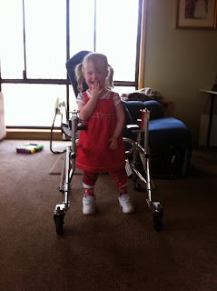 And obviously getting a walking frame and trying to use it a little, is a huge STEP in the right direction. After the initial issues with needing new AFO's, then new shoes to go over the AFO's, then realizing the AFO's needed to be cut smaller at the front, then needing new shoes again(smaller ones). Veronika is becoming more stable in a supported standing position all the time. Today I really realized this, when she was standing up against a soft inflatable bouncing thing she got for Christmas.